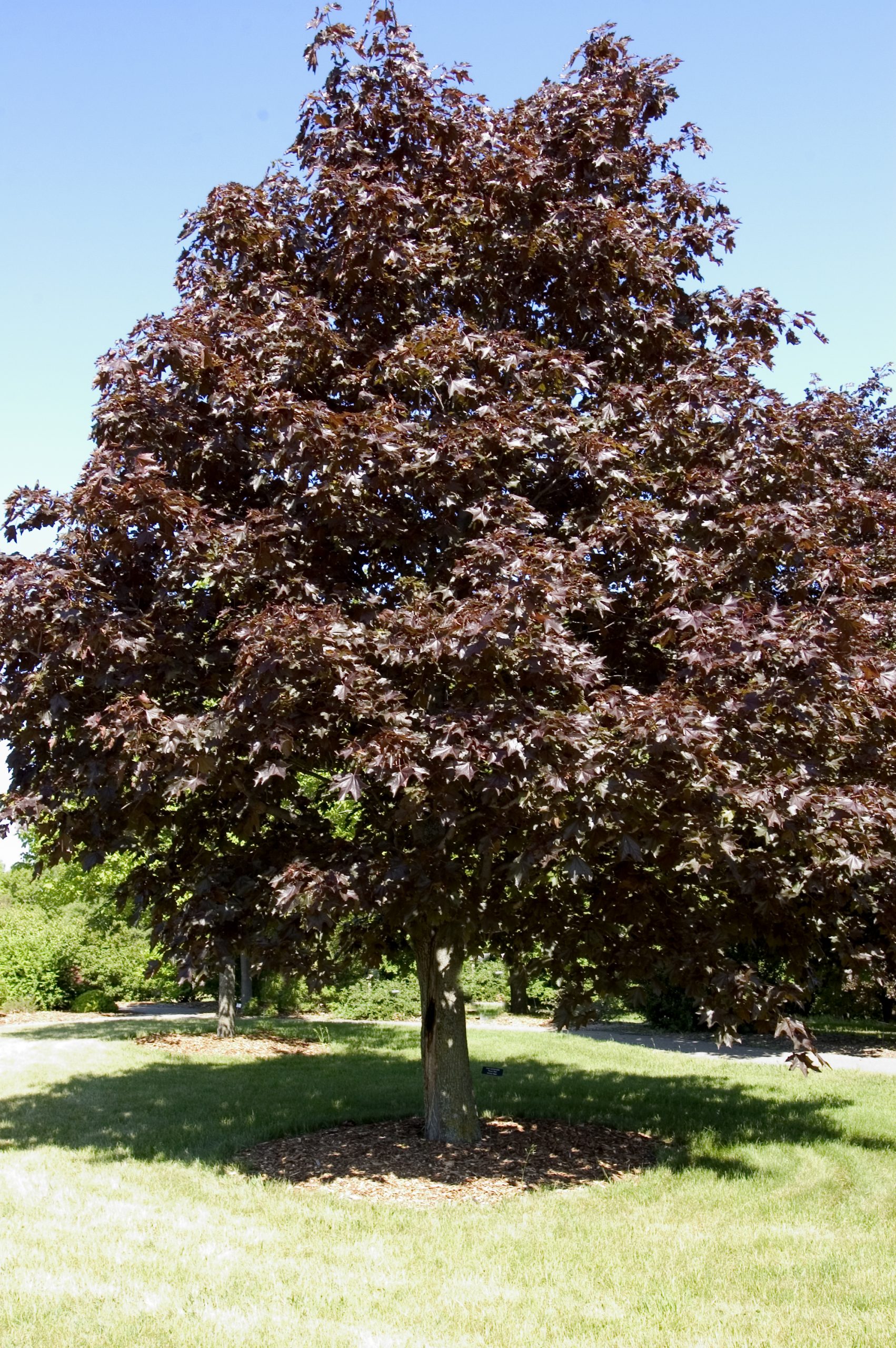 This Norway maple selection is similar to ‘Crimson King’, but with a somewhat slower growth rate and what some consider slightly better color. A dense shade tree, it has a straight trunk with a well-shaped canopy. The glossy foliage is an excellent maroon red all season.