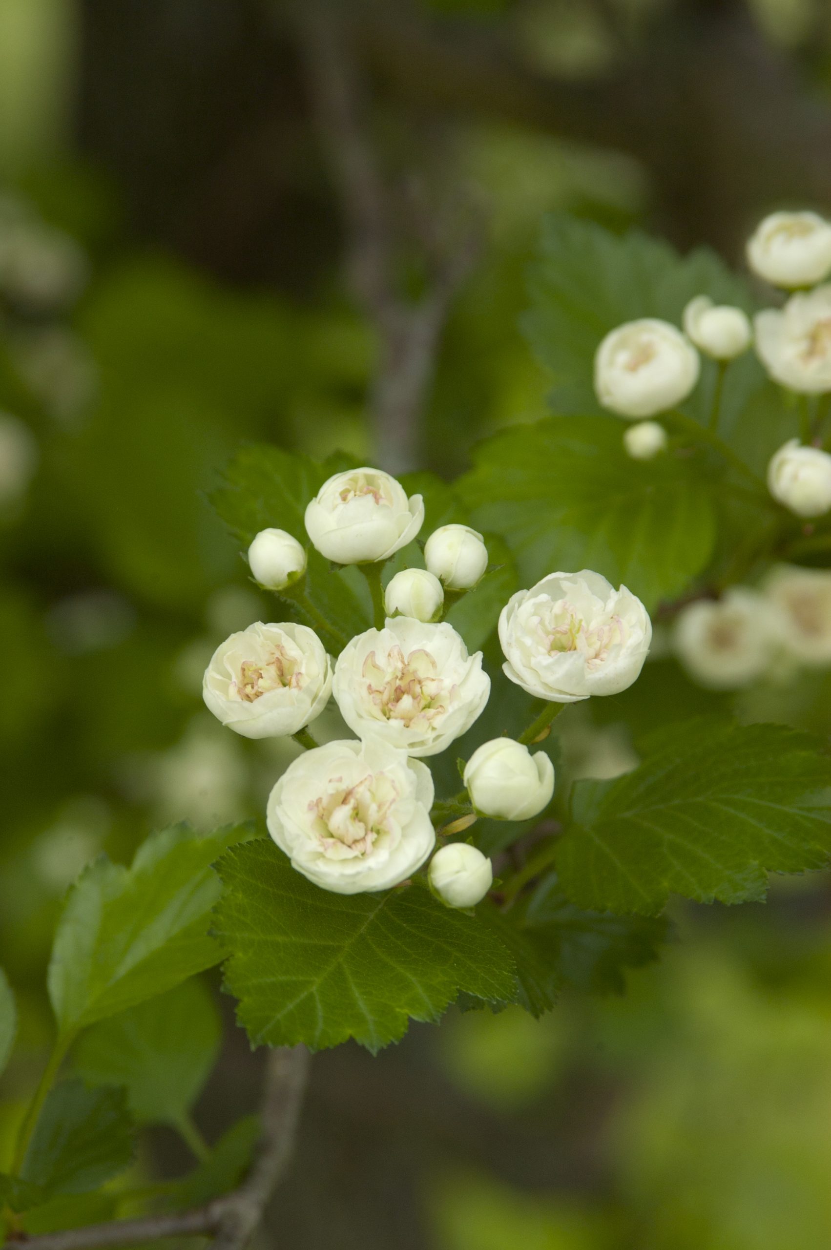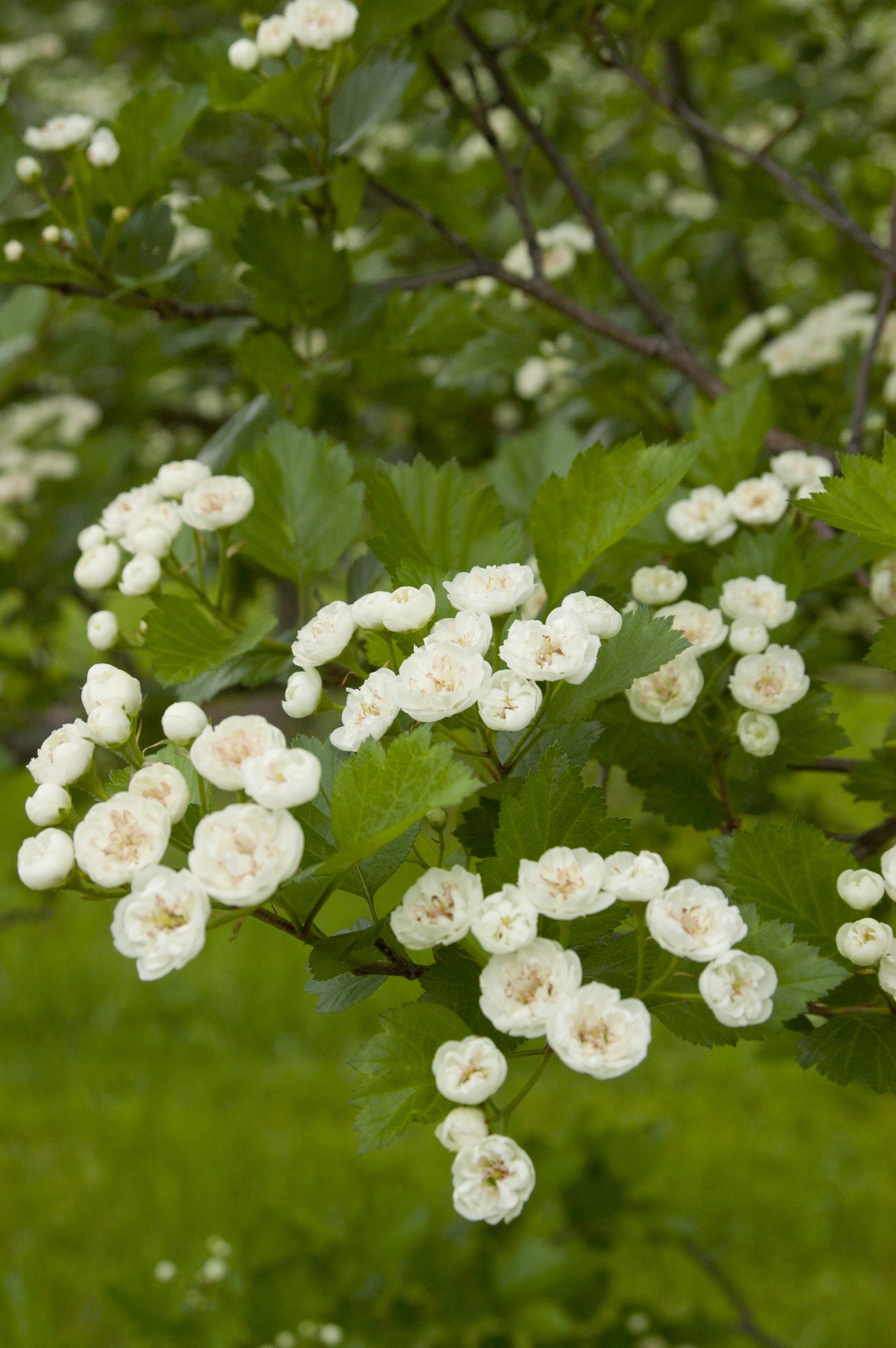 This tree has attractive, fragrant double white flowers, but fruit production is sparse.